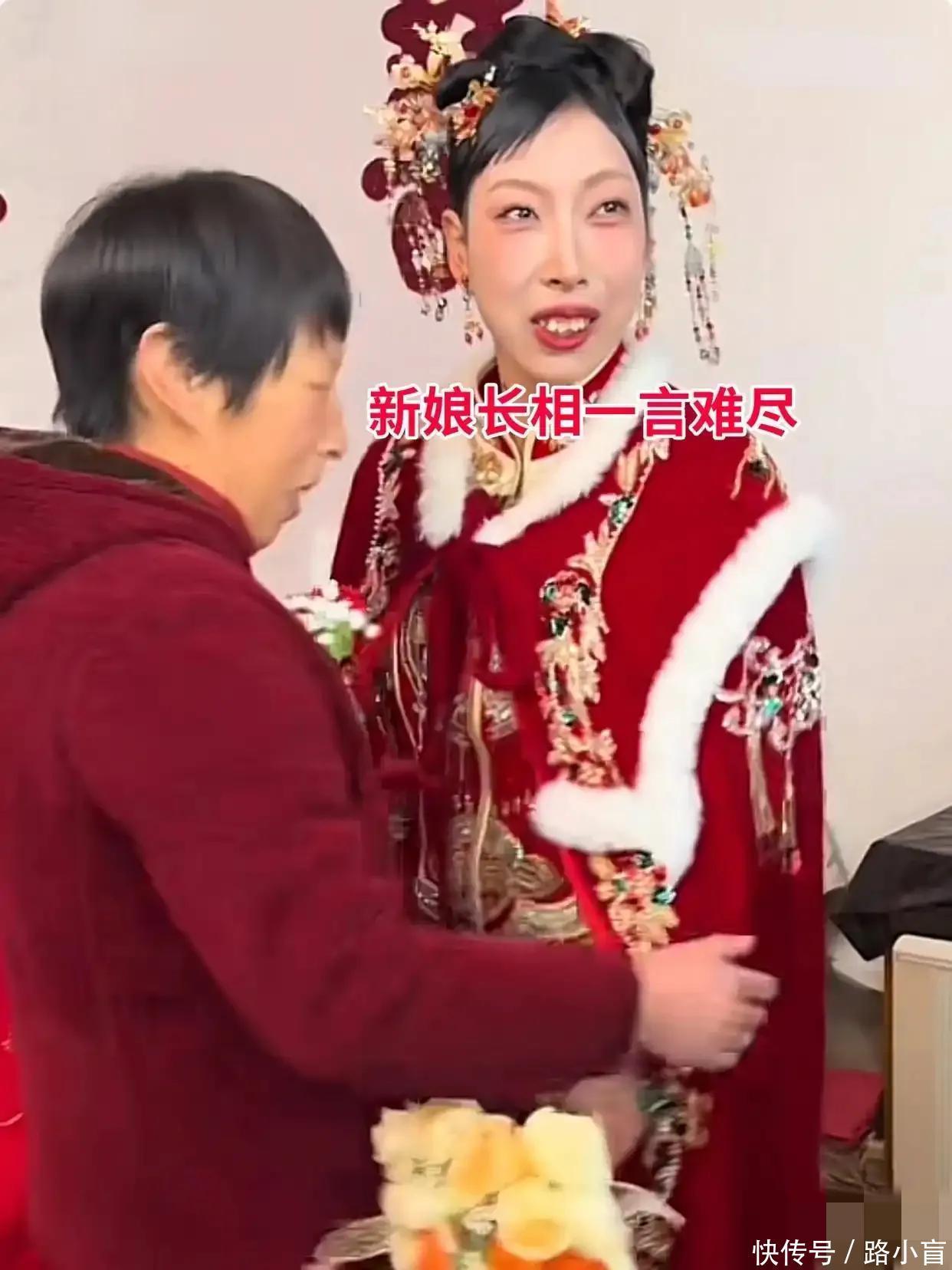 新娘穿得整齐得体,头上戴的珠翠闪闪发亮,她与母亲相貌相似,显然是遗传下来的,她不抱怨什么,也不躲避镜头,反而笑得挺自然,大家都说她是个实在人,能好好过日子,可新郎那边,有人嫌她人品不好,有人看她脸不舒服,心里总是过不去那道坎,这事被拍下来传到网上,评论区一下子热闹起来。
